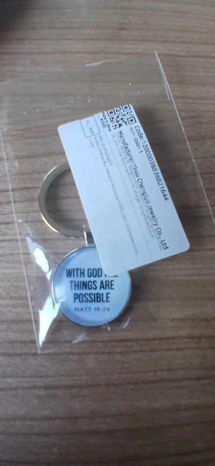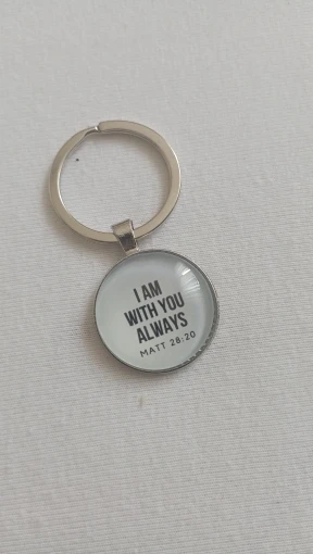 Each keychain features a beautifully printed Scripture quote sealed beneath a crystal glass cabochon, set in a silver-plated zinc alloy frame. Choose from 12 unique designs, each with its own verse and style.